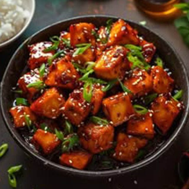 A spicy Indo-Chinese favorite featuring crispy paneer cubes tossed in a flavorful sauce with bell peppers, onions, and aromatic spices. Perfect as an appetizer or main course!
