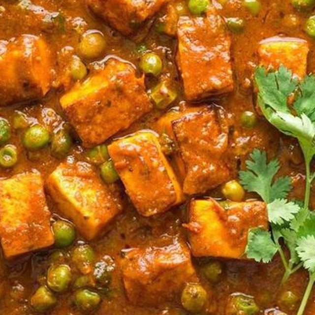 A classic North Indian dish featuring paneer (Indian cottage cheese) and tender green peas cooked in a rich, spiced tomato-based gravy. A comforting and flavorful vegetarian dish, perfect with naan or rice.