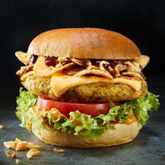 Grilled paneer patty topped with fresh veggies, creamy sauces, and served in a soft bun. A savory, satisfying vegetarian delight!